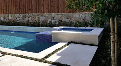 Our professional pool and spa technicians only use sealants specially engineered to work like silicone caulk but with the added advantage of permanent flexibility! These sealants are permanently waterproof, flexible and UV stabilized, and can be applied on wet or dry surfaces. Apply around the perimeter of the pool under the decking as a preventative measure to keep water from getting behind tiles at the water line.